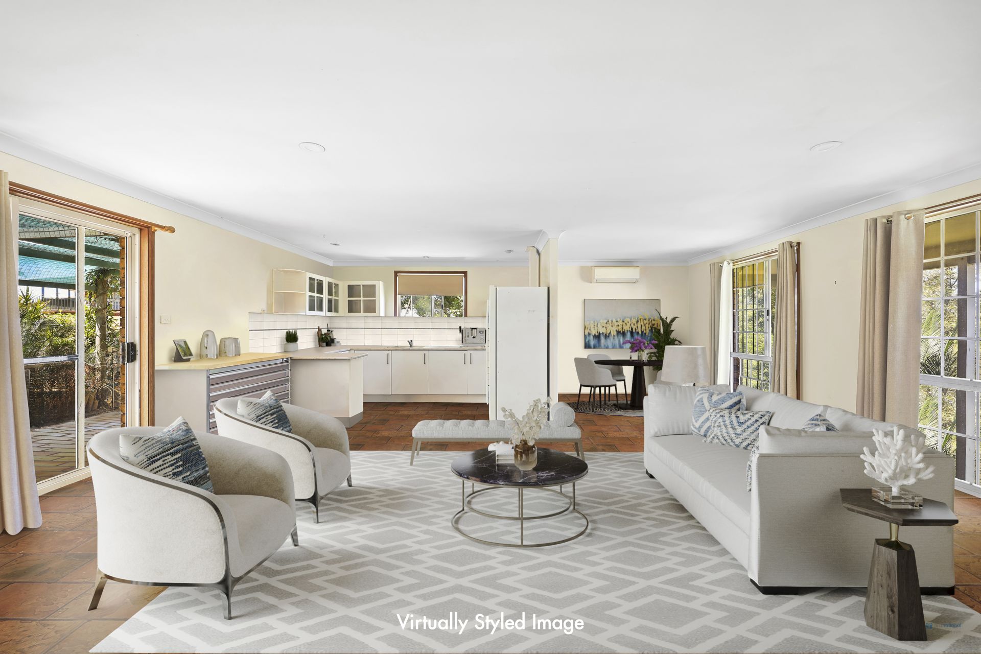 - Open plan kitchen, dining and living area
